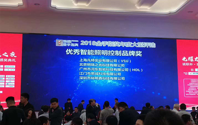 2018年我們參加了中國照明行業(yè)年度的大型評選——誠聯(lián)杯·第八屆金手指獎,榮獲“優(yōu)秀智能照明控制品牌”獎。頒獎典禮在12月22日冬至當天盛大開幕,此次盛會以“共建照明新時代”為主題,來自行業(yè)內外的專家學者、照明設計師、企業(yè)及媒體代表等800多人齊聚一堂,共同見證榮獲嘉獎的榮譽時刻。