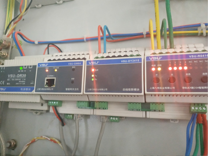 此項目采用了VSU網(wǎng)關(guān)、級聯(lián)、回路模塊等,手機(jī)app控制端的區(qū)域管理、定時控制也使操作整個場館的開關(guān)變得更加方便。