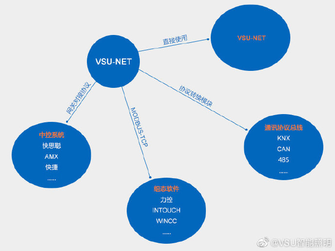 VSU智能照明控制系統(tǒng)通過自主研發(fā)的VSU-NET通訊協(xié)議可以做到單獨(dú)自組解決方案,同時也可以與市場上不同通訊協(xié)議的系統(tǒng)搭配,實(shí)現(xiàn)靈活多樣的行業(yè)智能化控制解決方案。 VSU的VSU-NET總線產(chǎn)品,大都采用雙總線口的設(shè)計(jì),搭配連接片使用,極大降低施工人員接線的工作量,產(chǎn)品設(shè)計(jì)合理專業(yè)、系統(tǒng)、更加人性化;系統(tǒng)配置免編程,手機(jī)即可完成簡單的系統(tǒng)編程,不需要電腦,人機(jī)互動,真正實(shí)現(xiàn)智能化控制!