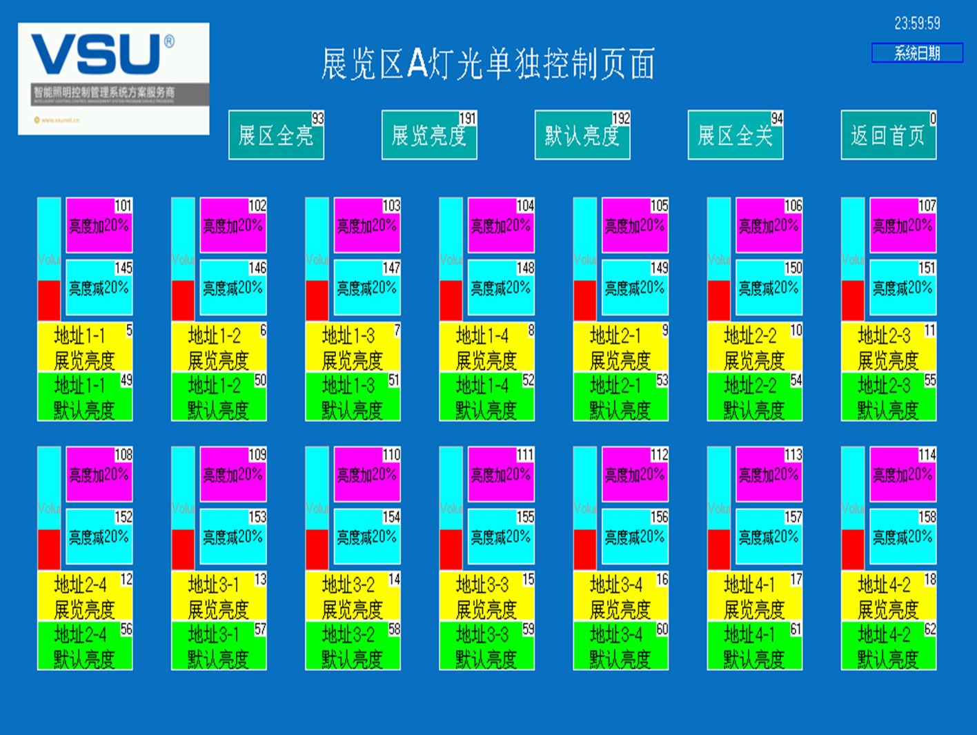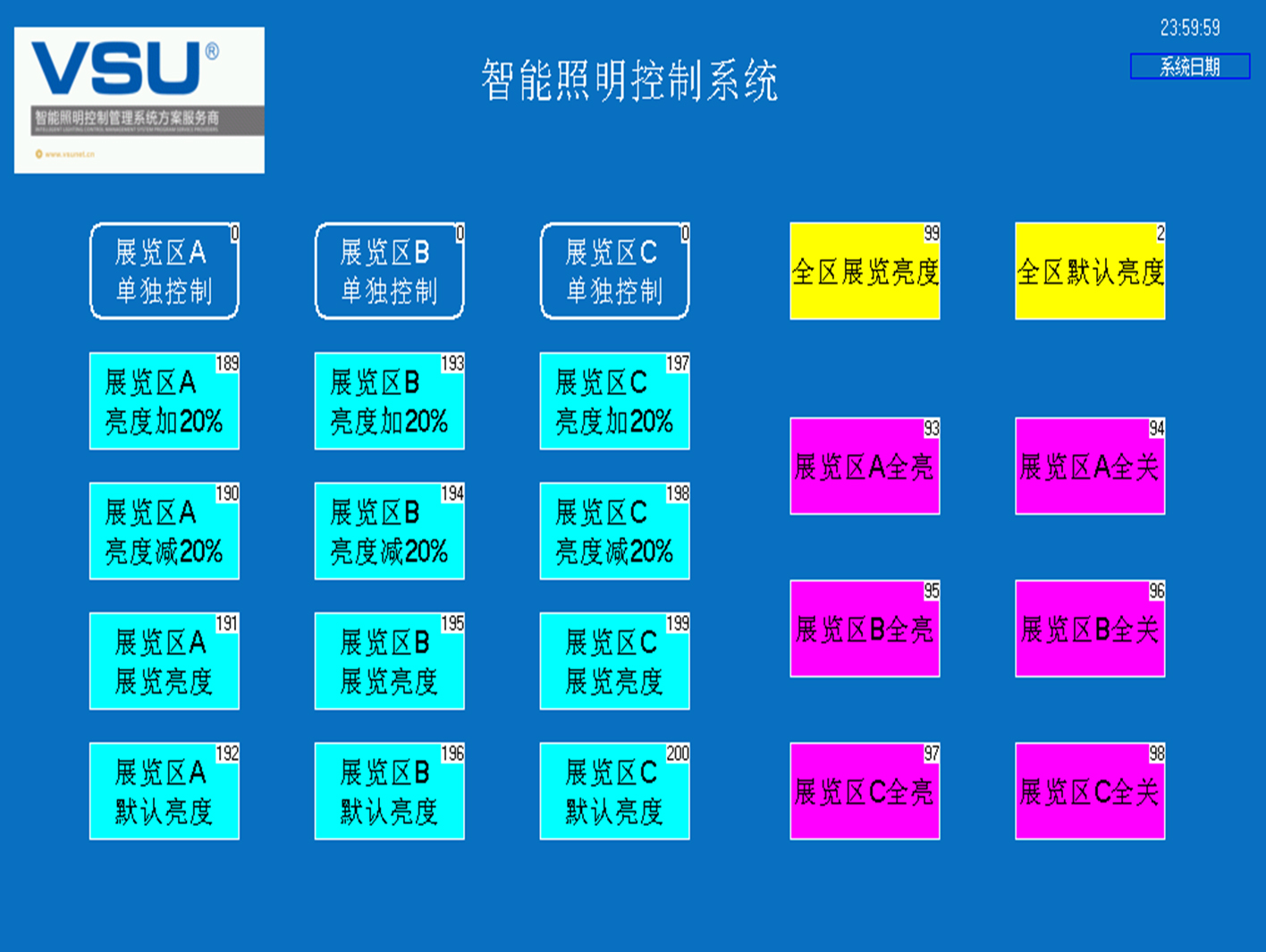 該項目采用的VSU照明設備有:4路16A智能照明模塊、人體感應器、6路IO模塊、智能6鍵面板、網(wǎng)關主機、電源模塊、7寸安卓觸摸屏。自動感應人流,調(diào)節(jié)燈光亮度,在不減少旅客游覽體驗的情況下節(jié)省電能消耗。