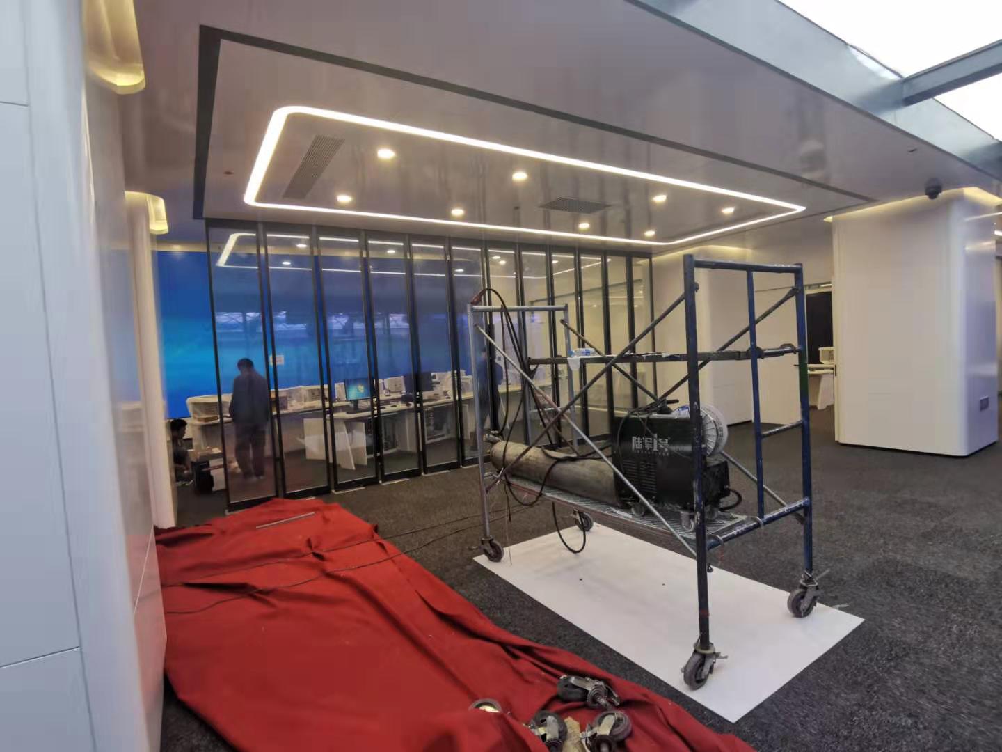 霧化玻璃與霧化玻璃門:調(diào)度中心有五組霧化玻璃,其中兩組為可旋轉(zhuǎn)霧化玻璃門。經(jīng)過技術(shù)對(duì)接以后,通過控制霧化玻璃的干接點(diǎn)信號(hào),閉合則控制霧化玻璃門透明,斷開則控制霧化玻璃門霧化。旋轉(zhuǎn)門也同樣控制干接點(diǎn)信號(hào),閉合則旋轉(zhuǎn)九十度,斷開則復(fù)原。
