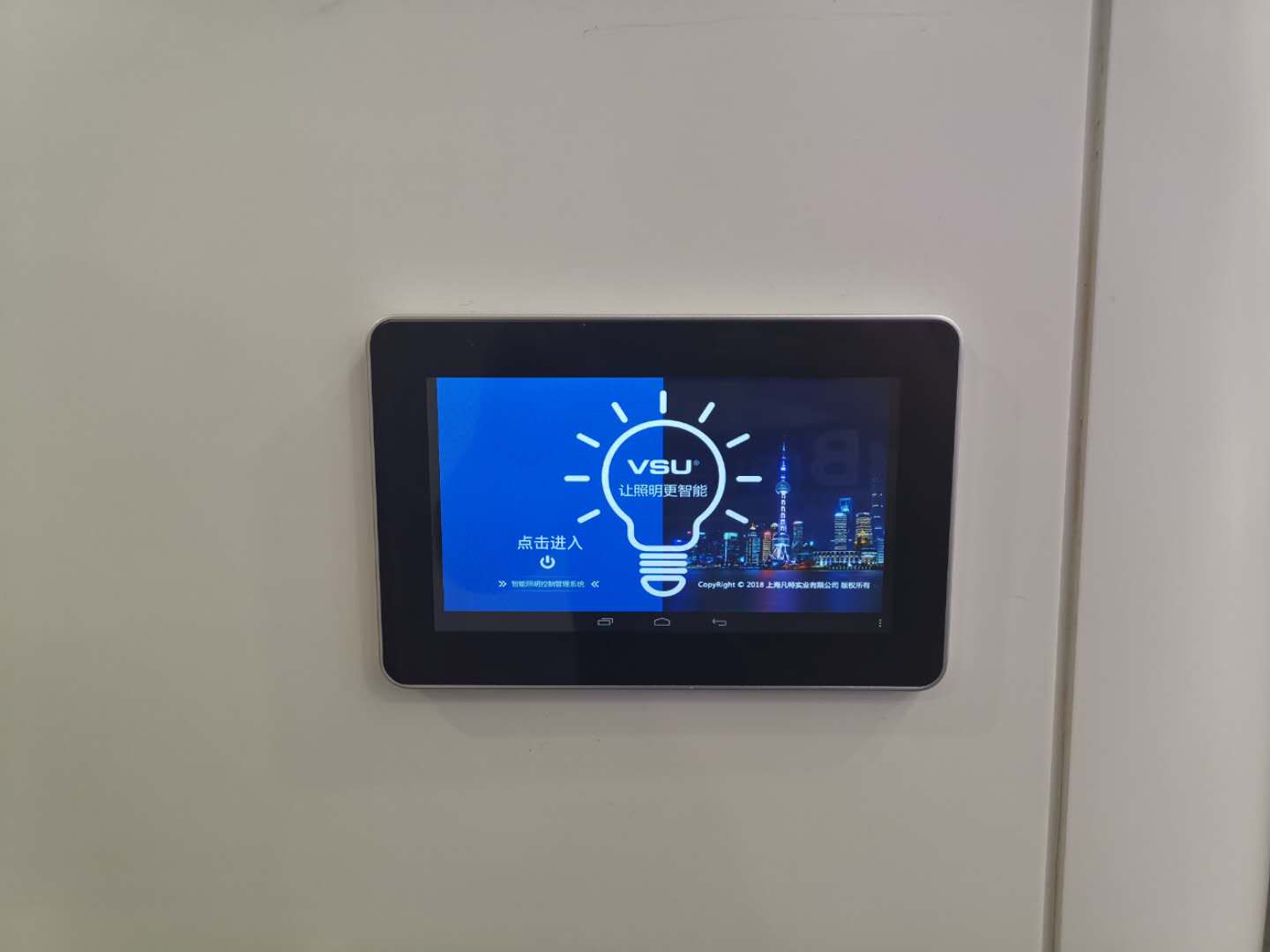 項(xiàng)目采用7寸觸摸屏對(duì)整個(gè)辦公區(qū)域進(jìn)行集中控制:燈光控制;電動(dòng)門的開啟與關(guān)閉;霧化玻璃的透明/霧化切換,霧化玻璃門的旋轉(zhuǎn);空調(diào)的高中低三檔控制,以及各種場(chǎng)景化的控制效果。