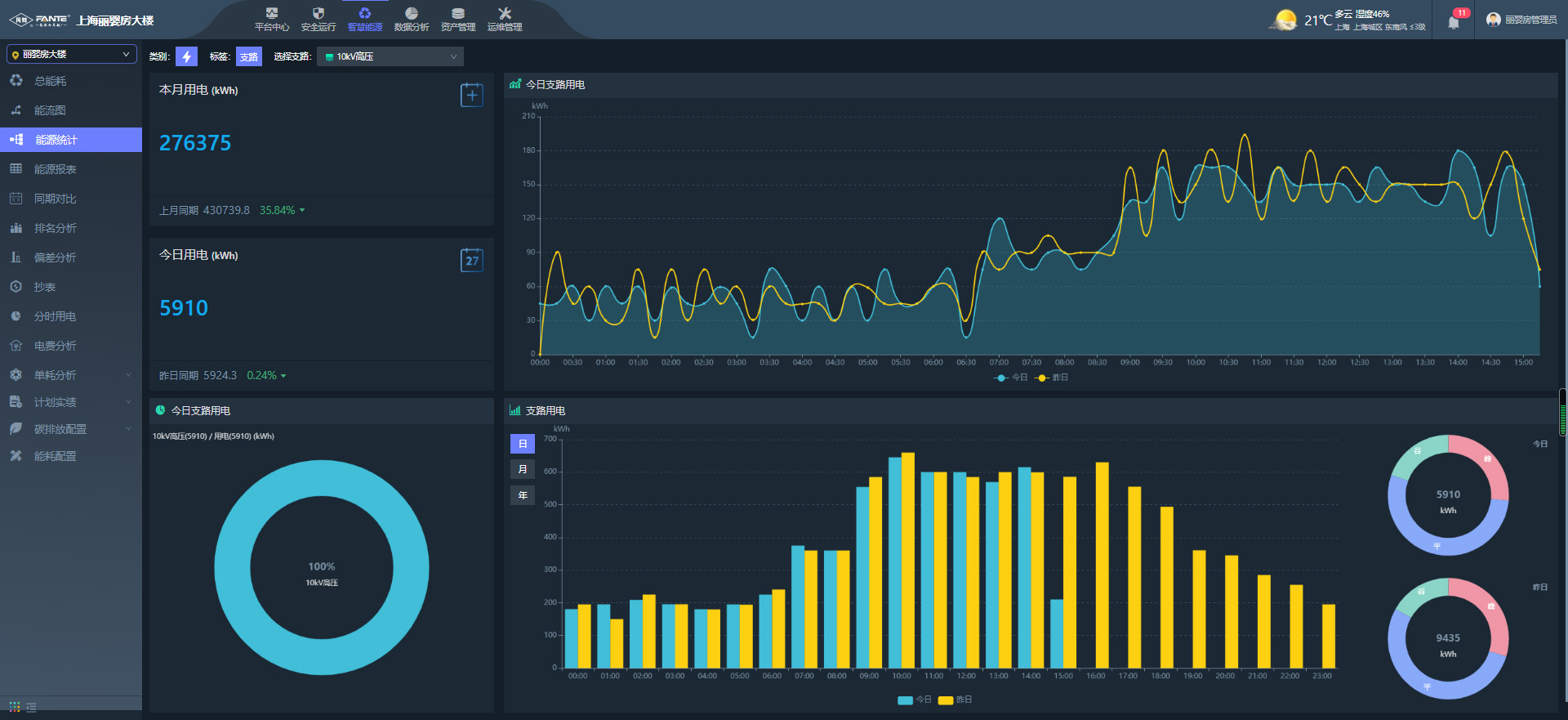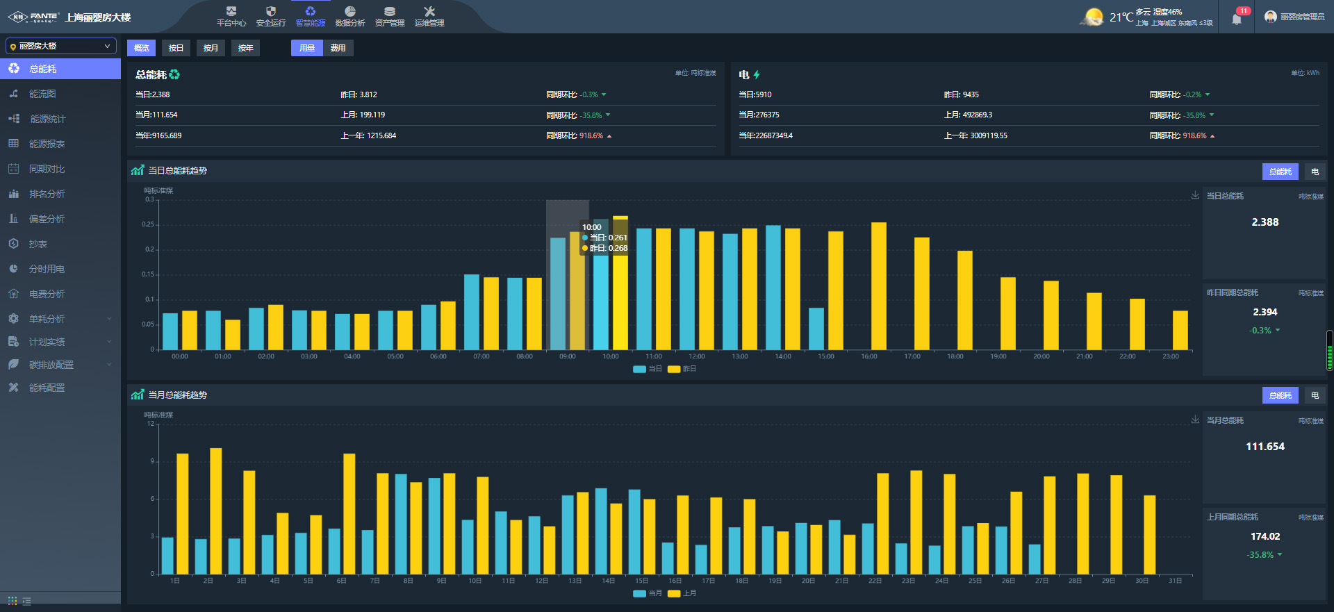 傳統(tǒng)企業(yè)的能耗管理沒有統(tǒng)一的監(jiān)管方式,數(shù)據(jù)統(tǒng)計(jì)不集中,各種能耗之間信息不互通,無法形成統(tǒng)一有效的管理;對能源流向的管理沒有實(shí)時(shí)數(shù)據(jù),無法及時(shí)發(fā)現(xiàn)一些能源浪費(fèi)的問題存在,造成無需求區(qū)域能源的流失;傳統(tǒng)的能耗管理方式依靠人工巡檢、手動(dòng)抄表,無法對用能規(guī)律進(jìn)行自動(dòng)化統(tǒng)計(jì)分析,管理效率低;沒有預(yù)警、預(yù)防、預(yù)測機(jī)制,跑冒滴漏現(xiàn)象普遍存在而沒有及時(shí)發(fā)現(xiàn),存在安全隱患。凡特根據(jù)正泰啟迪智電港的情況,為其打造一套專業(yè)的智慧能源管理系統(tǒng)。
