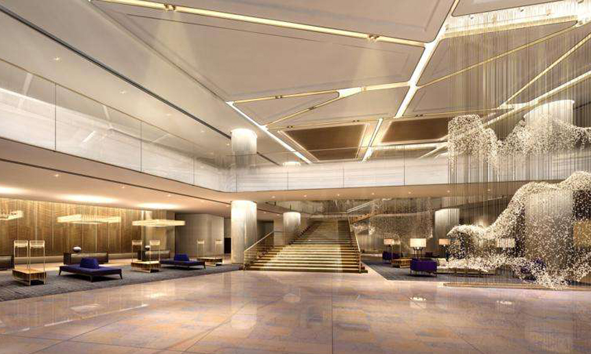 大廳是酒店人流量較大的區(qū)域。按照國際標準,酒店大廳的最佳照度為150~300LUX。為保持大廳的舒適性,設計時采用了亮度傳感器控制來調(diào)節(jié)大廳的光照度。系統(tǒng)根據(jù)設定的照度值和大堂內(nèi)照度的變化,自動開/關大堂內(nèi)照明設備的數(shù)量,使大廳內(nèi)照度保持恒定。另外,在大廳里還設置一個智能燈光控制面板三位開關,用于現(xiàn)場就地控制。大廳照明的控制方式靈活多樣,系統(tǒng)提供就地控制、中央監(jiān)控計算機控制、時間控制等多種控制方式,工作人員可根據(jù)具體情況選擇合適的控制方式。