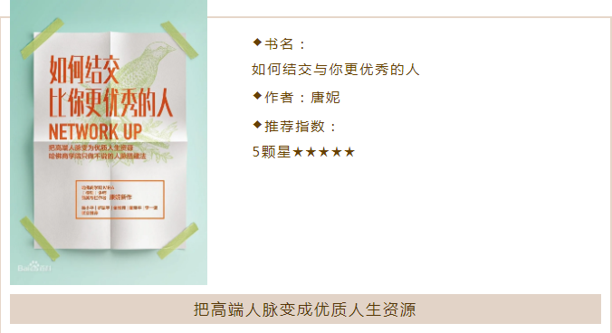 每個(gè)人都希望自己的學(xué)習(xí)、生活圈中能接觸到那些比自己更優(yōu)秀的人,讓自己變得更優(yōu)秀。而實(shí)際上并非如人所愿,每天在期望著卻并未去行動(dòng),最終只會(huì)讓自己離優(yōu)秀越來越遠(yuǎn)。并且悔恨時(shí)間過的太快,卻從未好好反思如何利用好當(dāng)下自己的亮點(diǎn),及時(shí)抓住機(jī)會(huì)時(shí)刻關(guān)注可以與優(yōu)秀的人結(jié)交機(jī)會(huì),亦或者不斷提升自己的各方面能力,讓自己變的更優(yōu)秀.我們?cè)谌粘5娜嗣}搭建中,時(shí)常會(huì)進(jìn)入“不敢”“不愿”“不會(huì)”的三大誤區(qū),是什么情況又該如何解決呢?不敢,是因?yàn)槲覀儾粔蜃孕牛貏e是向上結(jié)交。常常認(rèn)為別人比我們優(yōu)秀的多,我們不敢開口,錯(cuò)失機(jī)會(huì)。那就是要解決我們不自信的問題,如何讓自己變得自信,這是一個(gè)大話題??舍槍?duì)我們不自信的方面(口語表達(dá)、邏輯分析等)找出自身的原因,并找到解決的方法。另外這本書,我比較深刻的地方是,一個(gè)人不管是事業(yè)的成功還是生活的歡樂,80%歸因于和別人相處,20%才是來自自己的心靈。我也像作者康妮提到那樣一類人一樣,在手機(jī)通訊錄里躺著很多聯(lián)系人名字和號(hào)碼,有好多我真的想不出都是誰,長什么樣子,包括朋友圈一樣,這些聯(lián)系人都是我們?nèi)粘?梢跃S護(hù)或者找到學(xué)習(xí)亮點(diǎn)的人。通過這本書的學(xué)習(xí),讓我認(rèn)識(shí)到,一定要學(xué)會(huì)管理自己的聯(lián)系人,使他們成為自己的深度好友,還要學(xué)會(huì)連接優(yōu)秀的人,不過,了解結(jié)交更優(yōu)秀的人的方法和技巧,只是改變的第一步。要想成為人脈達(dá)人,還要在實(shí)際生活中刻意練習(xí),及時(shí)總結(jié)經(jīng)驗(yàn)教訓(xùn)。