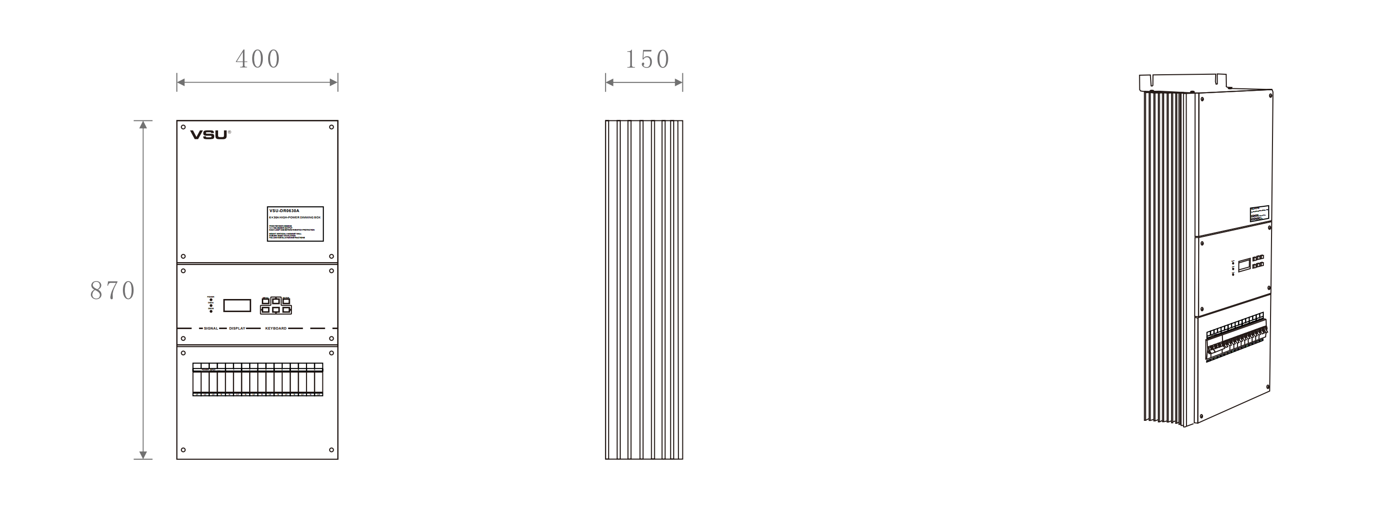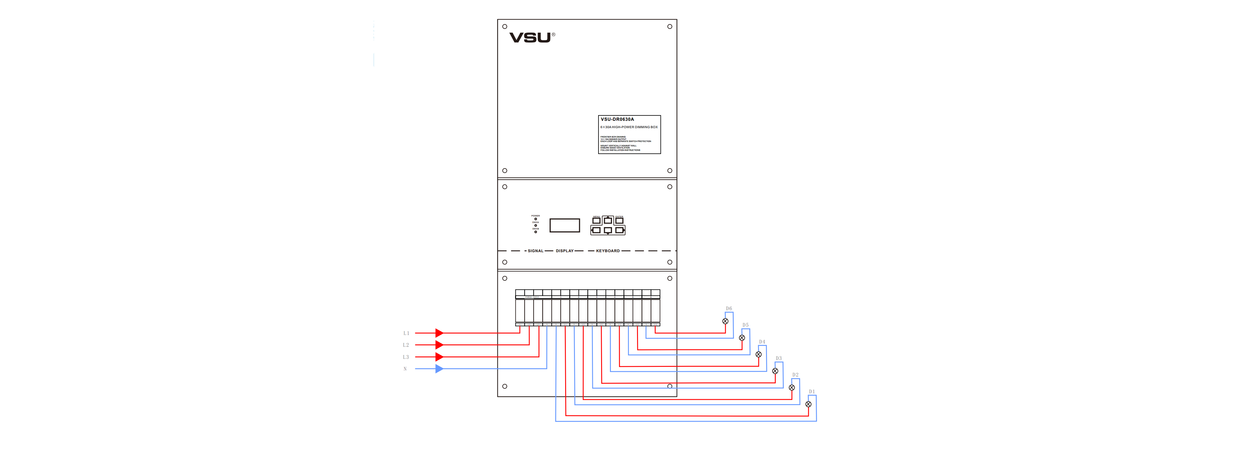 本產(chǎn)品為掛壁式安裝,前沿可控硅調(diào)光;6組調(diào)光通道輸出,每通道6KW;輕巧型設(shè)計(jì)美觀大方。帶斷路器保護(hù)。 |